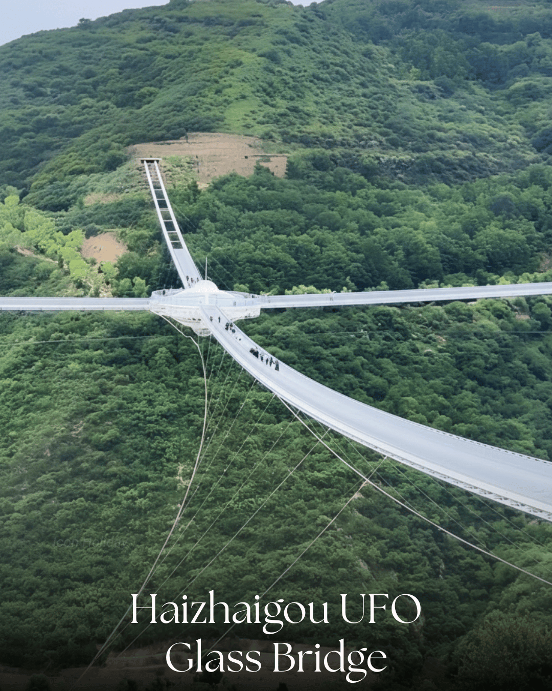 Hari ini tour diawali dengan mengunjungi Haizhaigou UFO Glass Bridge, jembatan kaca unik berbentuk UFO
