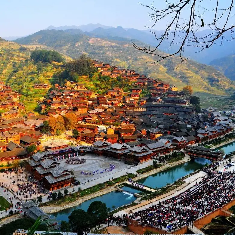 Sarapan di hotel, kemudian mengunjungi desa adat Miao terbesar dan paling indah di dunia, Xijiang Qianhu Miao Village (termasuk eco car 4 section), dengan lebih dari 1.000 rumah tradisional bertingkat di lereng bukit.