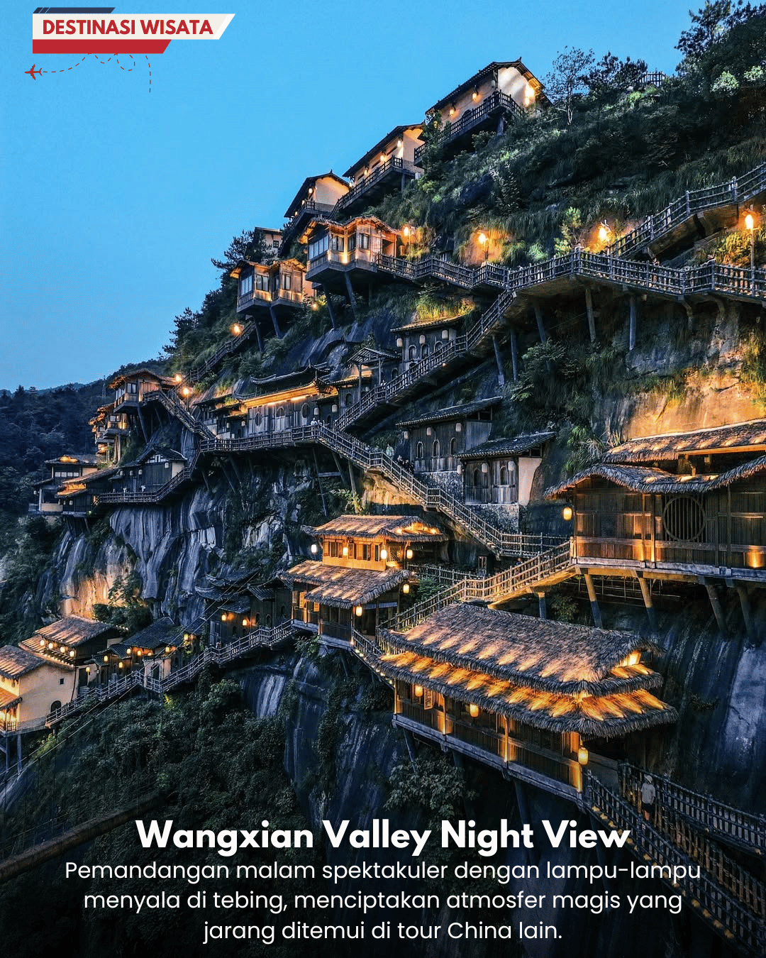 Malam hari menikmati keindahan pemandangan tebing Wangxian Valley