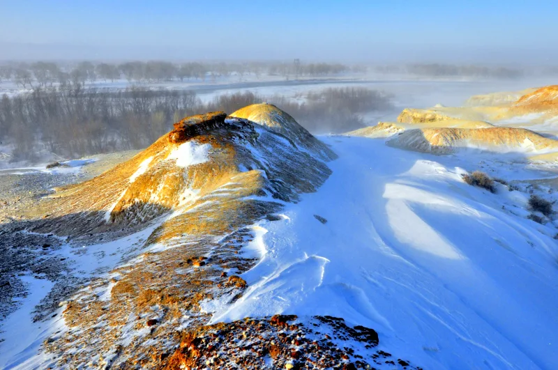 untuk melihat formasi batuan unik berwarna merah yang tertutup salju.